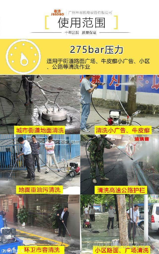 汽油发动机驱动的洗衣机高压清洗机,性能出彩,机动性高的工业级超高压冷水高压洗衣机,配置本田GX390,13马力汽油引擎,稳定性出彩275巴的高压和每小时900升的水流量可在恶劣的工作环境中有效性清除固执的污垢,不须用到电源。