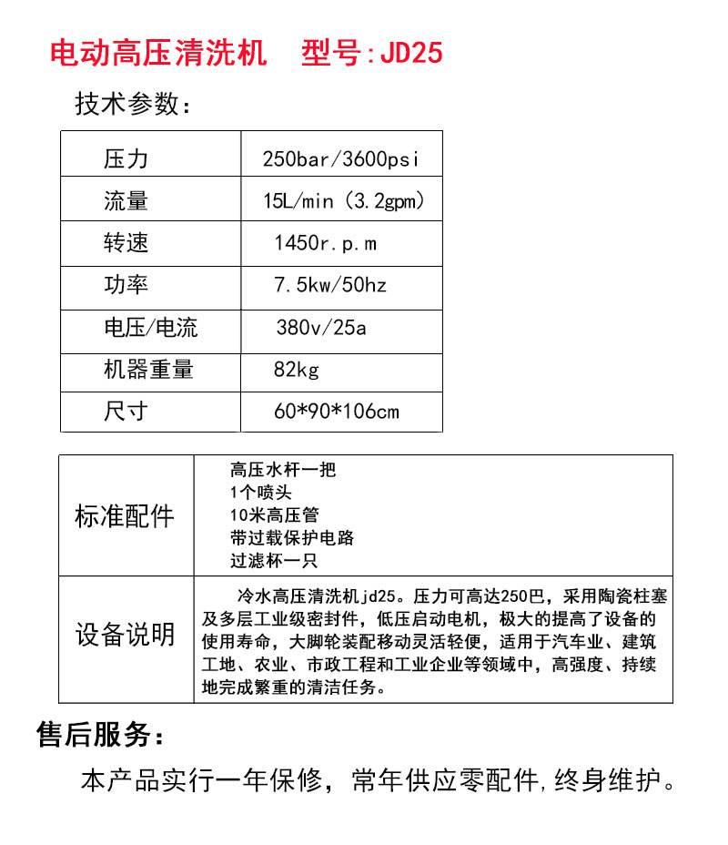 JD25高压清洗机技术参数: